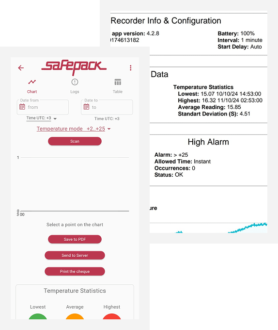 Данные передаются в мобильное приложение SafePack по Bluetooth.