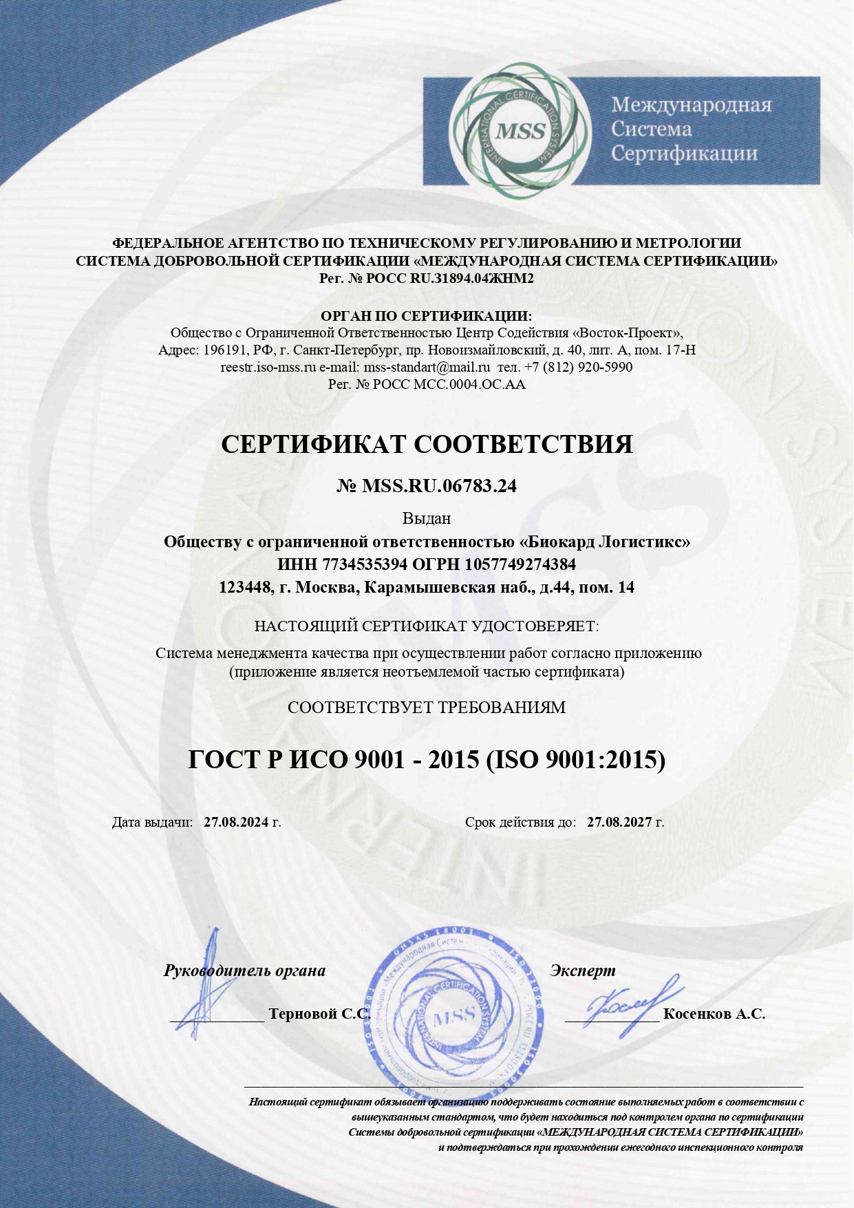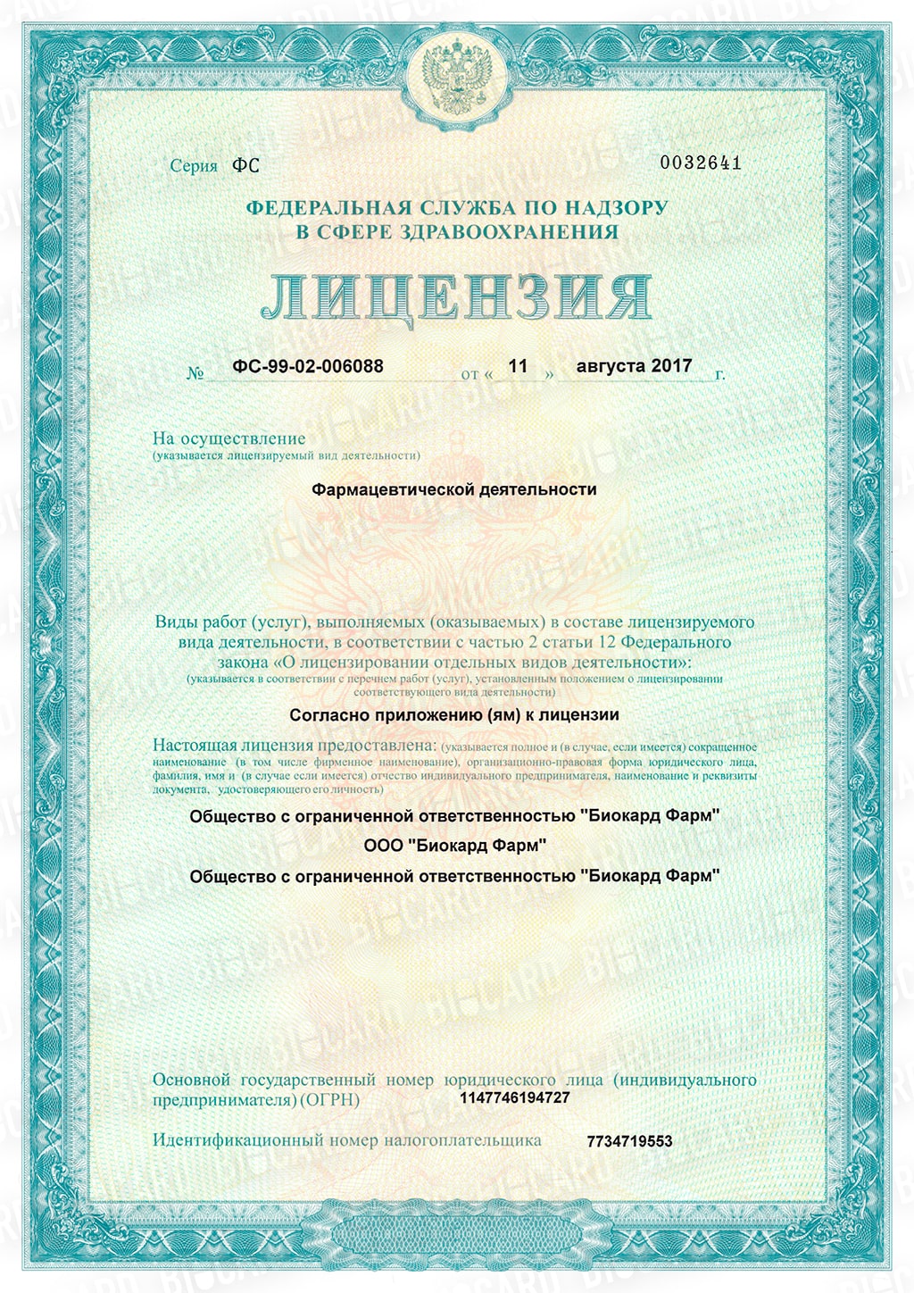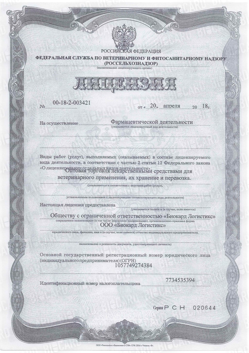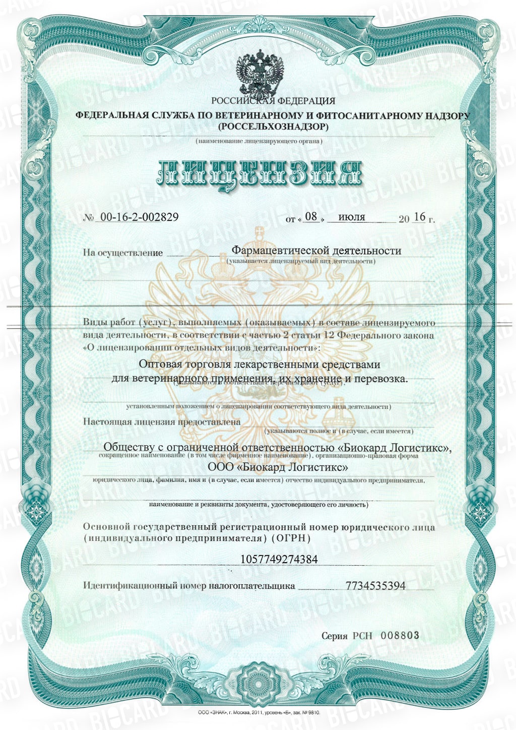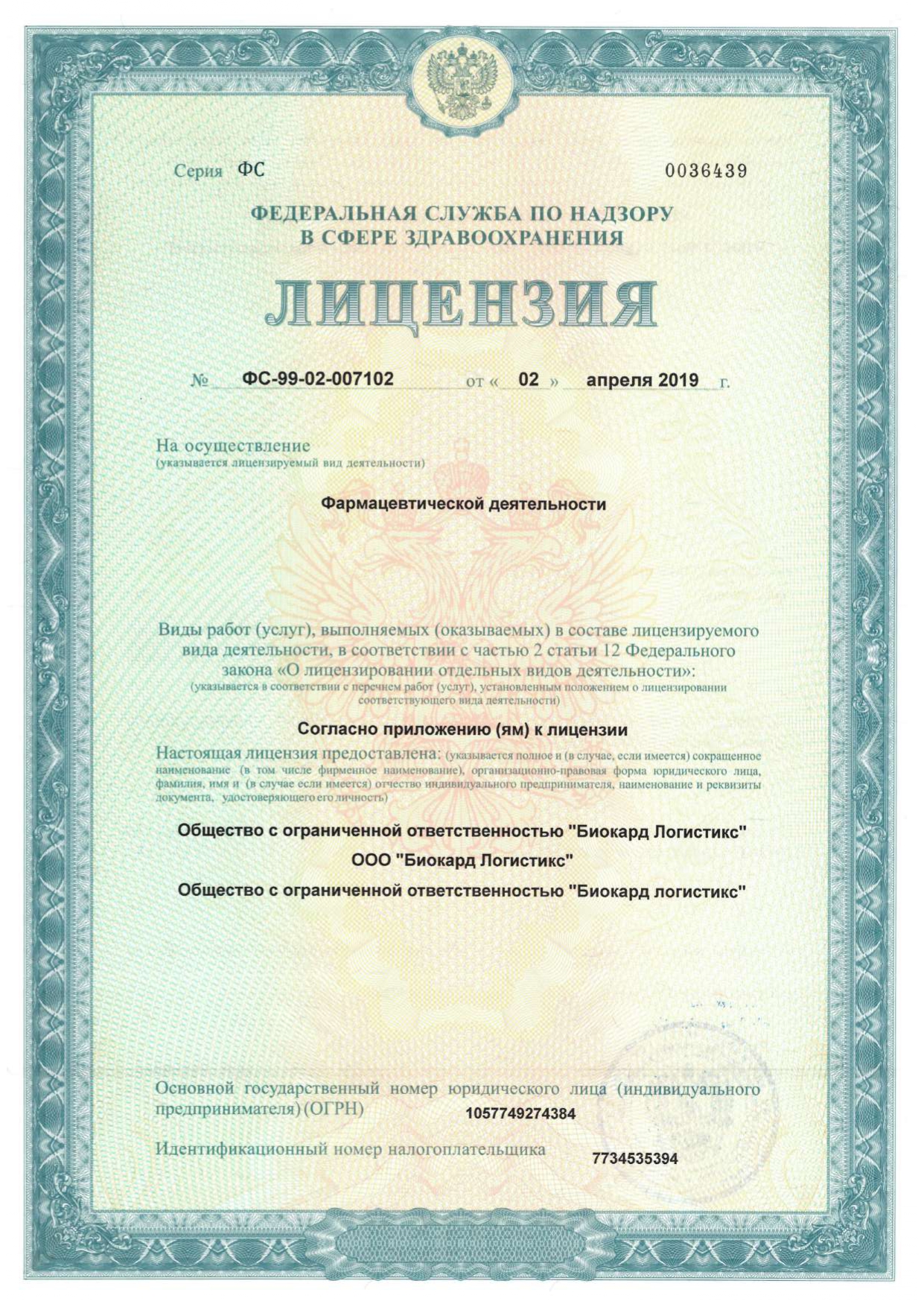 Компания BIOCARD оказывает полный комплекс логистических услуг в сфере здравоохранения. Для осуществления такой широкой деятельности, не обойтись без специальных документов.