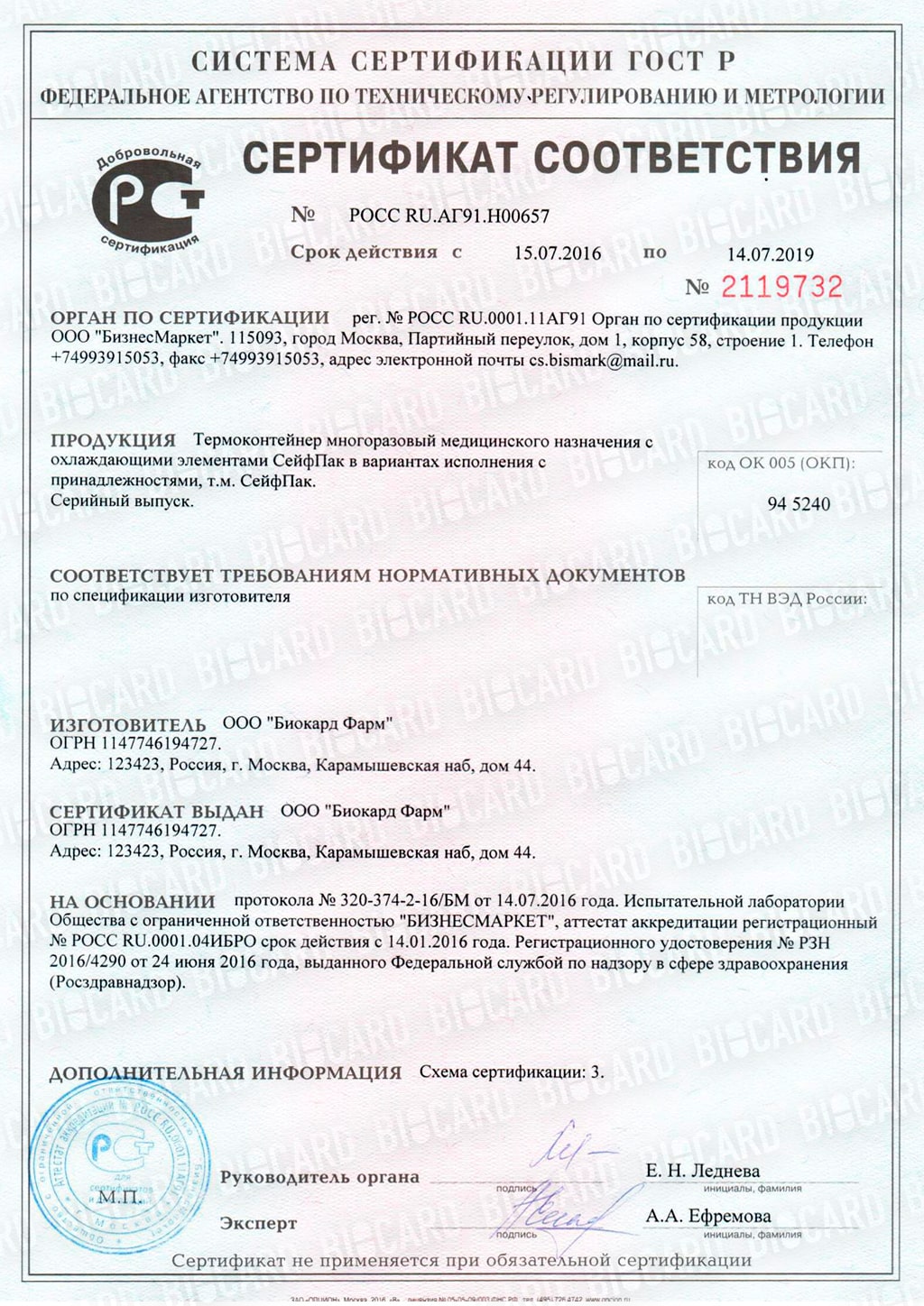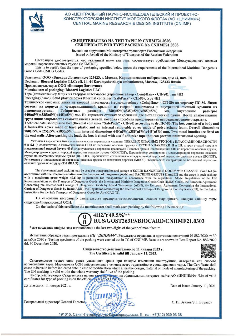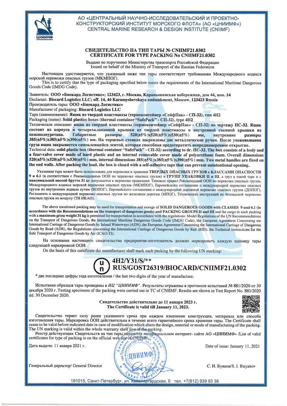 Производимые компанией термоконтейнеры прошли все необходимые проверки и имеют регистрационное удостоверение и сертификаты соответствия.