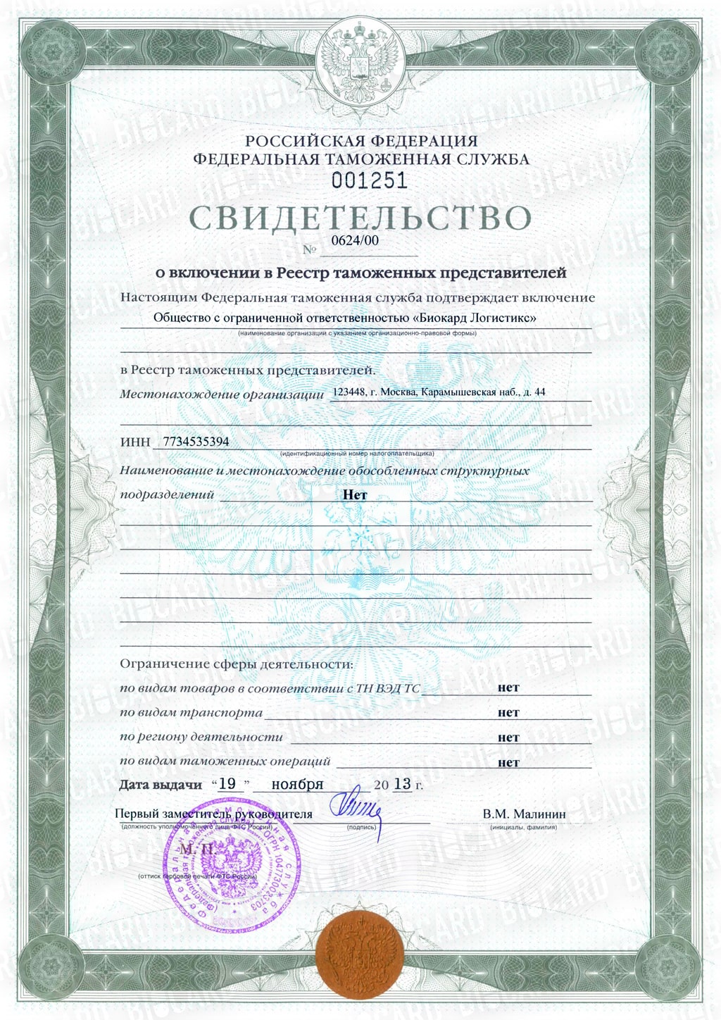 BIOCARD – лицензированный таможенный брокер, мы имеем право оказывать услуги по таможенному оформлению в любом регионе России и за пределами страны.